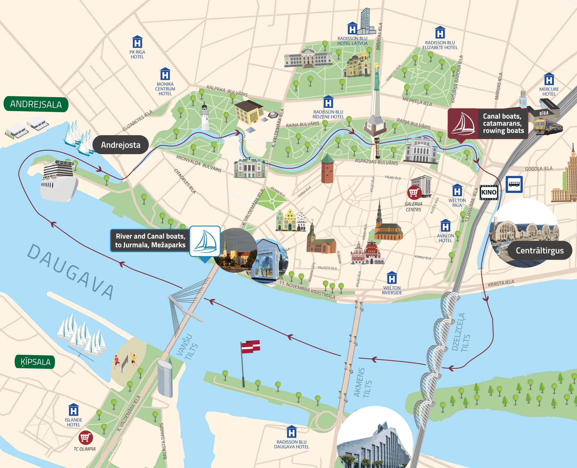 Mēs piedāvājam upes kuģīšus „VECRĪGA“, „MISISIPI“, „ELIZABETE“ un „AGNES“, kanāla kuģīšus „AMBER RĪGA“, „AURORA“, „ARABELLA“ un „ANNABELLA“, lai noorganizētu: